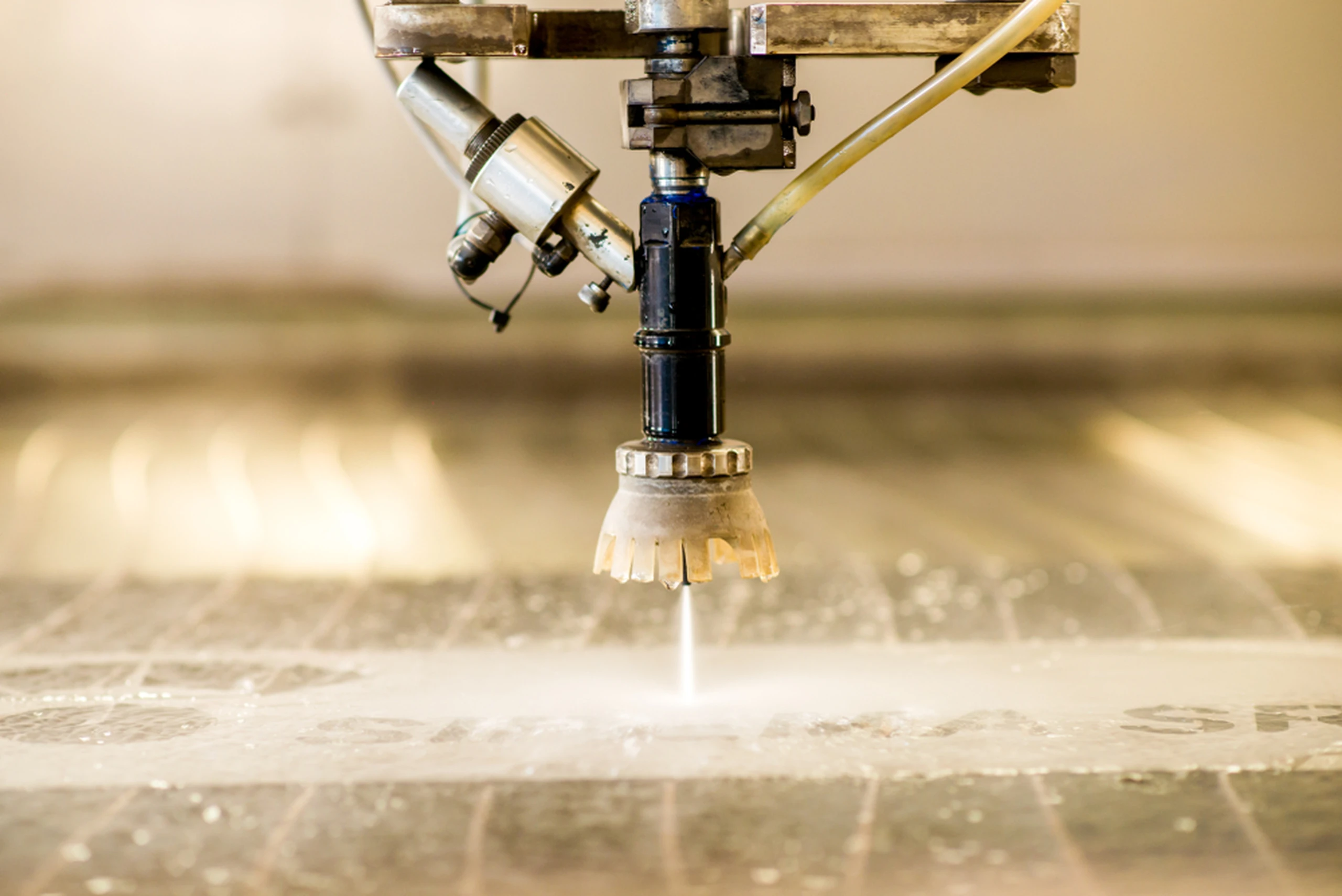 Die Trennmethode von Material mit Wasserstrahl mit abrasiven Teilchen erlaubt es, ein ganzes Spektrum an Materialien von hoch harten Materialien aus Stahl bis zu weichen, wie z.B. Kunststoffe, zu schneiden. Dabei werden relativ hohe Genauigkeiten erreicht.